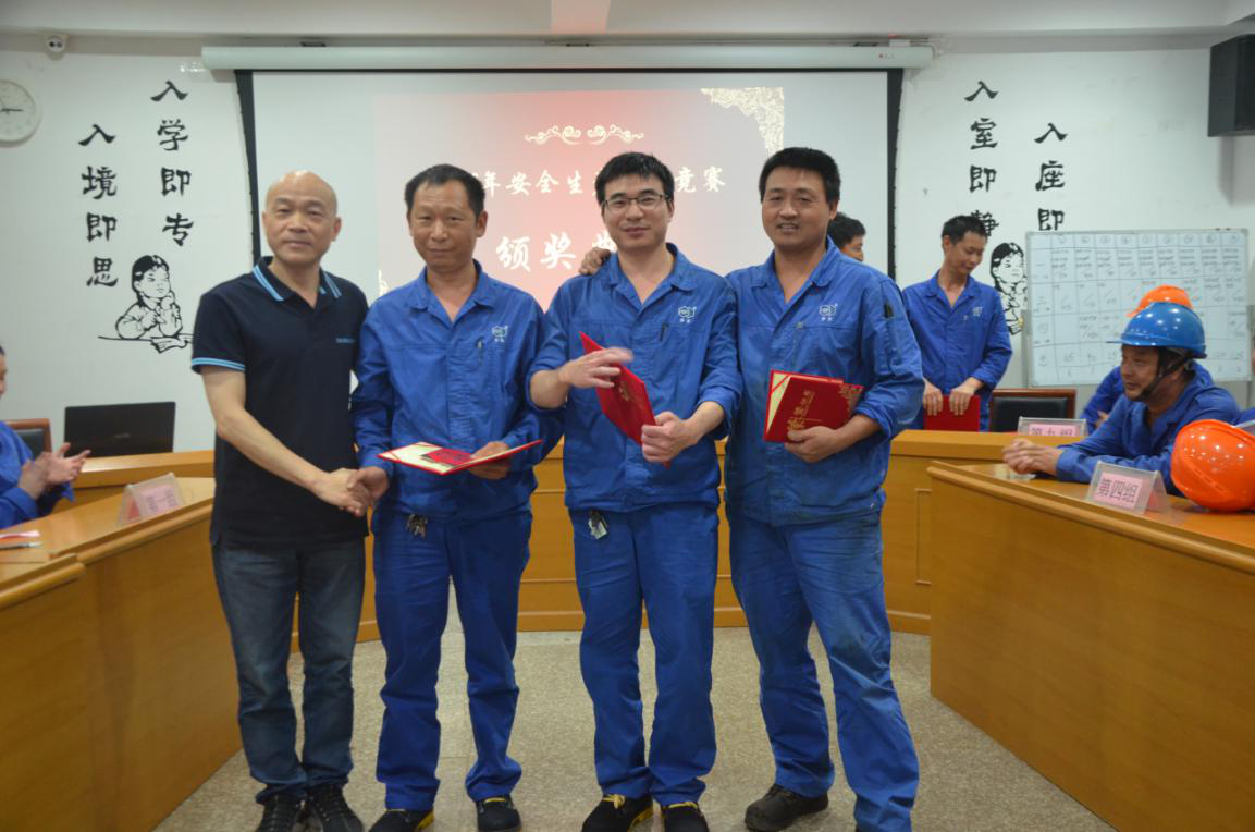 经过激烈交锋,动力组代表队力压群雄,取得了本次竞赛的冠军,四车间、二车间、一车间、三废车间代表队分别获得了第二、三、四、五名。公司副总经理徐贤陆、唐银东及常务副总王进国分别为获奖队颁发了奖状和奖品。