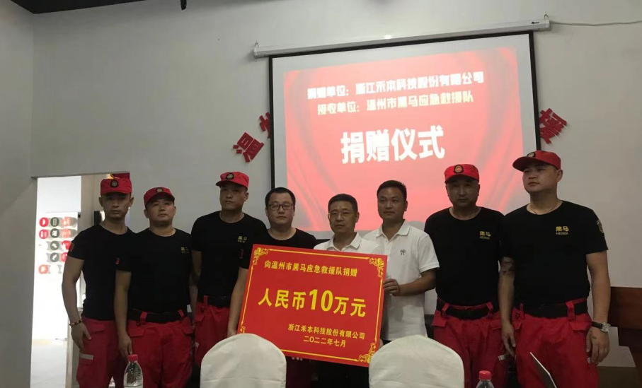 7月26日下午,在黑马救援队会议室举行了澳门十大正规网投平台向温州市黑马应急救援队捐赠10万元仪式!